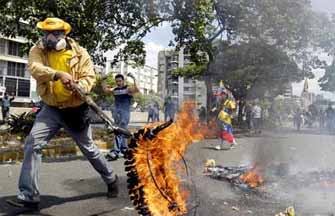 TV footage showed officers from the opposition-controlled Metropolitan Police, helping the demonstrators as they changed locations to clash with National Guard troops. Venezuelan Vice-President Jose Vicente Rangel said the government could take control of that police force for their anti-government actions.