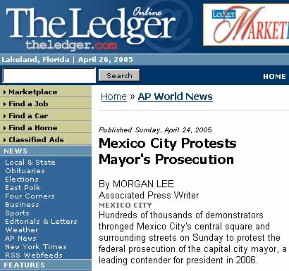 News: "More than a million people overflowed Mexico City's streets Sunday to protest the prosecution of mayor and presidential hopeful Andrés Manuel López Obrador.