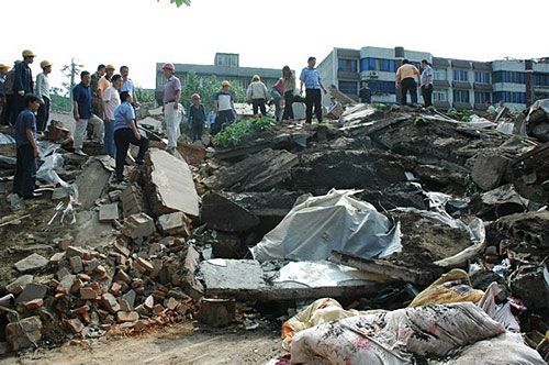 During the Sichuan earthquake, the classroom building at Fuxin Number Two Elementary School in Wufu town, Mianzhu city collapsed, leading to the deaths of 127 school children.