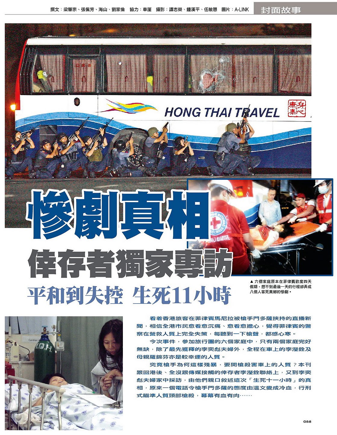 Over the past several days, Hong Kong has been both angry and sad over this Manila hostage incident. Although I have not discussed with other team members, I am sure that we are grateful for the concern and support of the citizens. But the way to comfort the souls of the dead is not to blame the innocent Filipina domestic helpers and the people of the Philippines. Our focus should be clearly on the Philippines government and its police. We want a fair and proper investigation. We want to an account of the responsibility in the incident. We want to provide for the future of the injured persons as well as the families of the deceased. This is how we show our concern for the casualties in this incident.