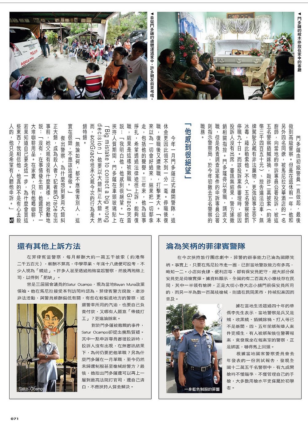 I realized finally that even though I had some colleagues from the Philippines, I and most Hong Kong people know almost nothing about that country. There are more than one hundred thousand Filipina domestic helpers in Hong Kong and they live with our families. But we have never cared about this country and its people who provide us with a large number of cheap laborers. We know that the Philippines is poor and that is why they export domestic workers all over the world. But how poor? I checked and I found out that one-third of its people live below the poverty line. Killings and kidnapping occur on a daily basis. Under such circumstances, why kind of life do the people have? I remembered that two days before the hijacking, our schedule included a visit to a flower car factory. There we smelled a foul odor. The tour guide pointed to the outside of the factory wall. There was a mountain of garbage out there. Many young children were picking through the garbage to make their living. This made us sad and speechless.