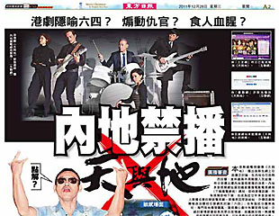 There are various speculations about the reason for the ban. According to some, this drama contained certain references to the June 4 incident and this has triggered discussion among mainland Internet users. According to others, the drama contained a sub-plot about collusion between businessmen and government officials, which would be sensitive given the current Wukan/Haimen mass incidents. TVB received notice from its licensed distributors about the ban yesterday, and they speculate that it may be the violence and gore that the ban (note: the story contained a sub-plot involving cannibalism).